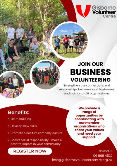 Reach out to info@gisbornevolunteercentre.org.nz or 06 868 4522 for more information.
